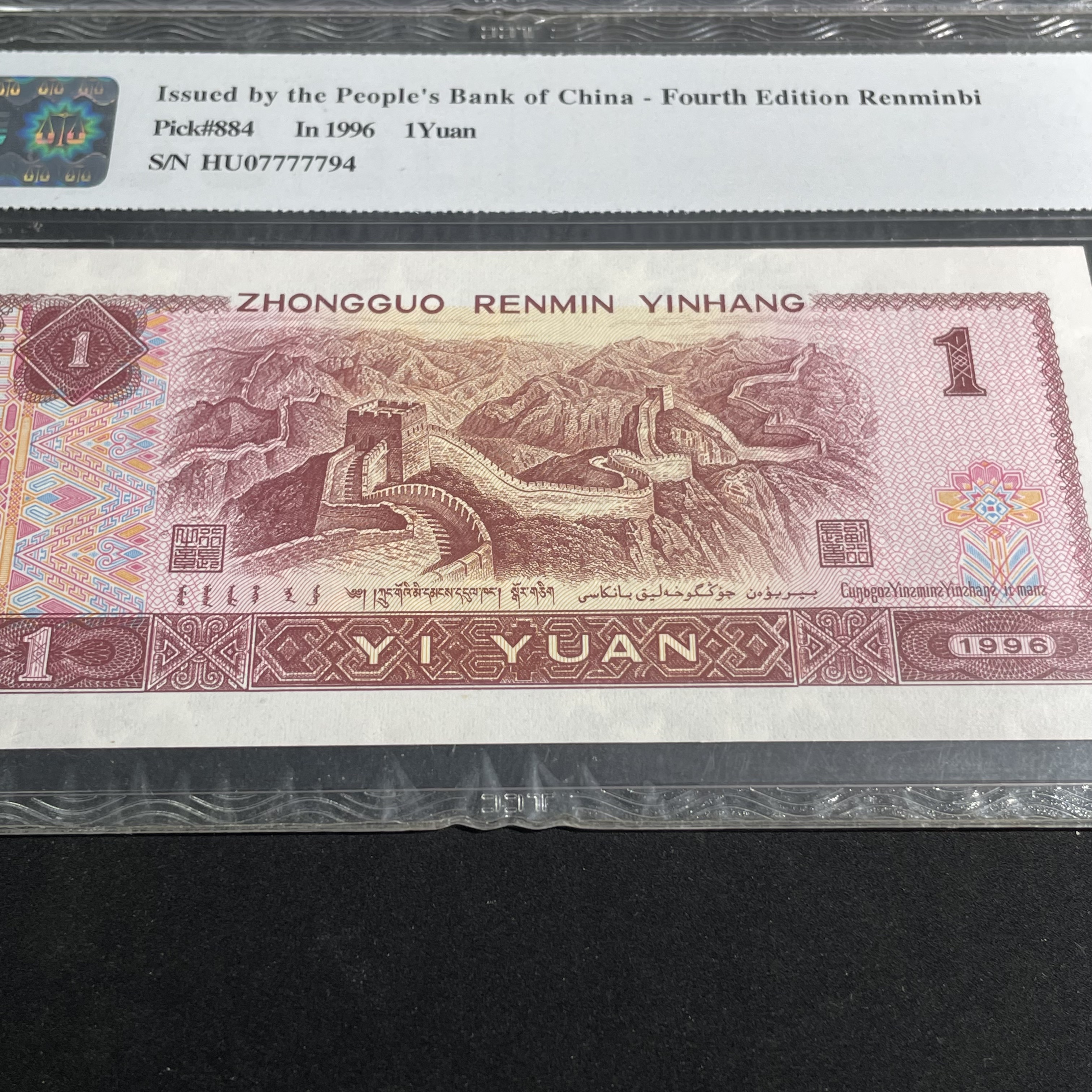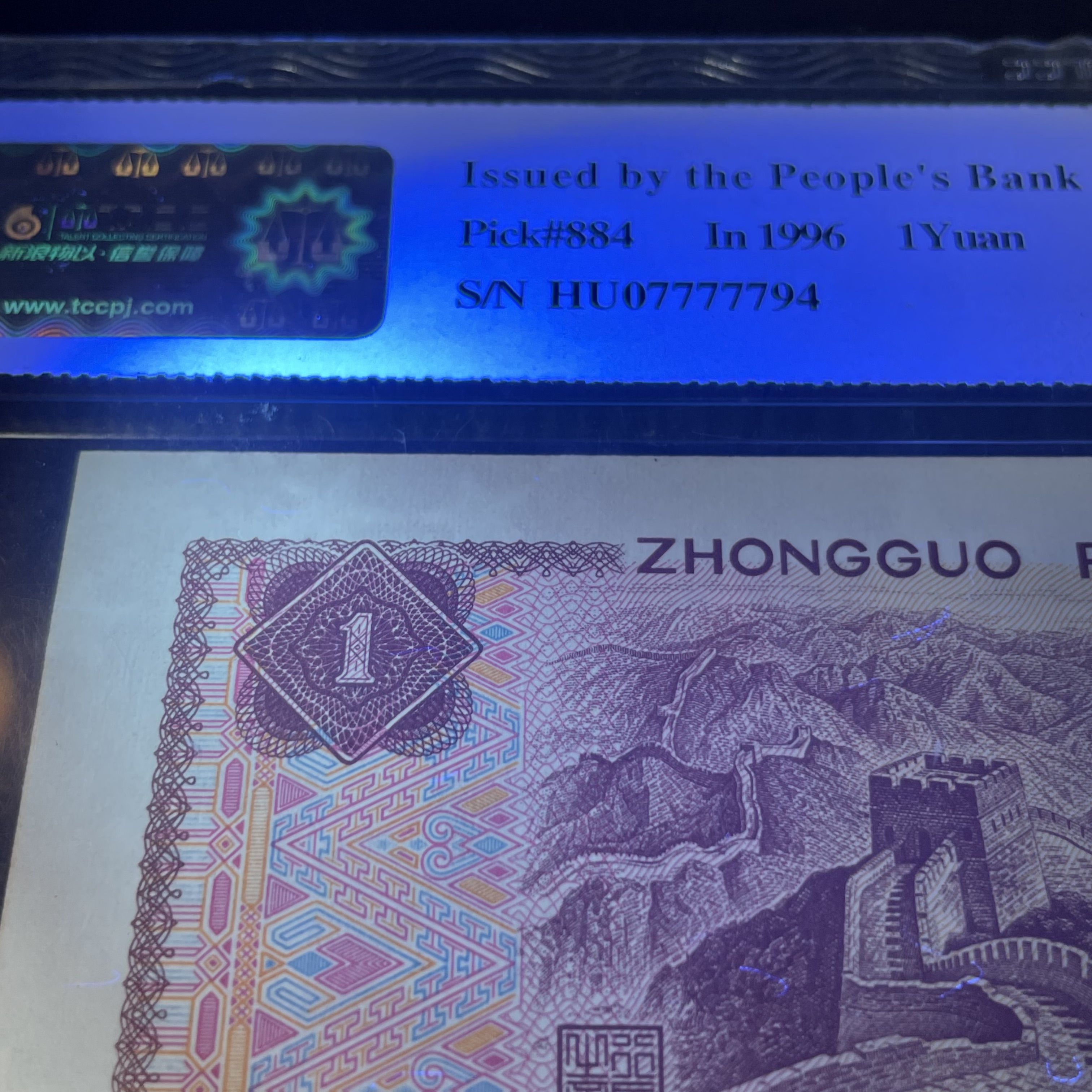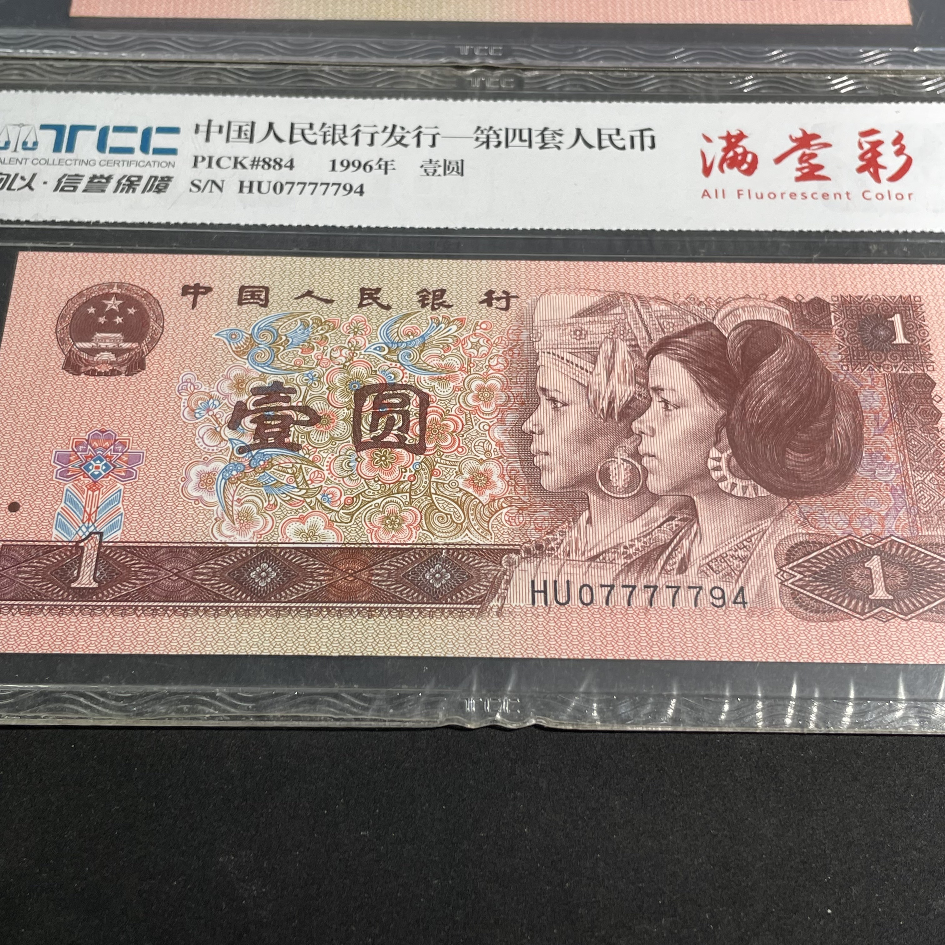 Two 1996 Edition 1-Yuan Banknotes with Tiger Pattern and Fancy Serial Numbers