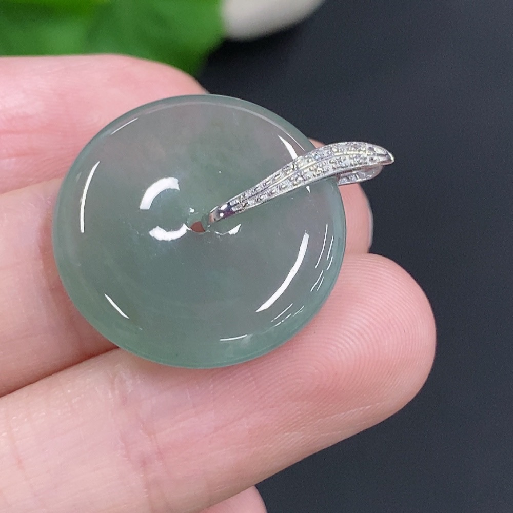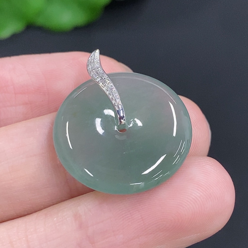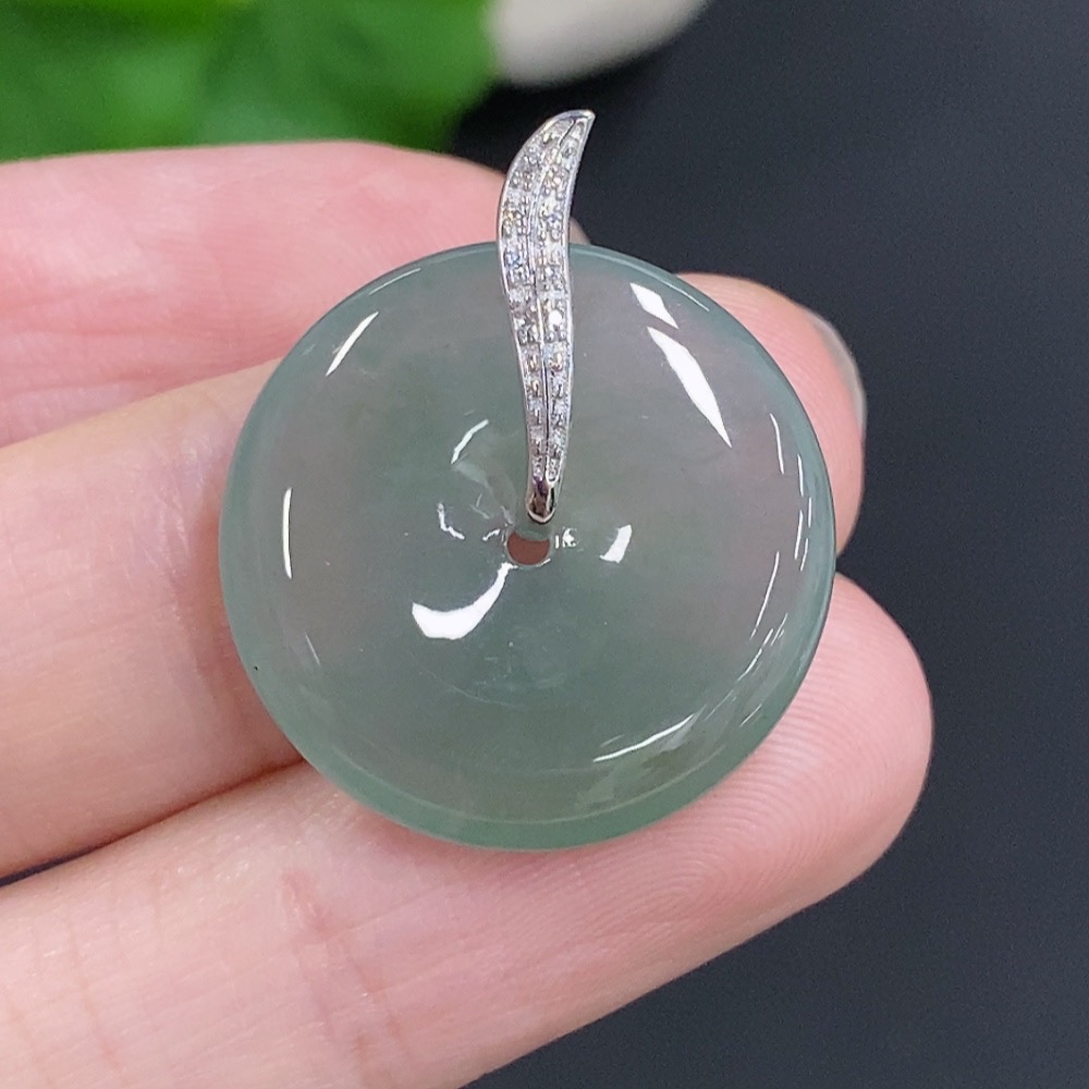 Jadeite Safety Buckle with 18k Gold Clasp, Total Weight Approximately 4.4g, Set with Diamonds