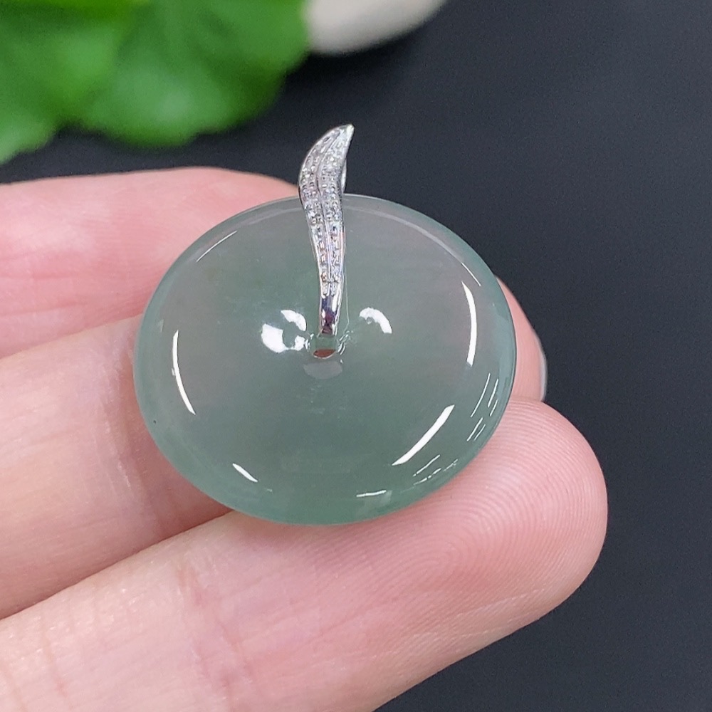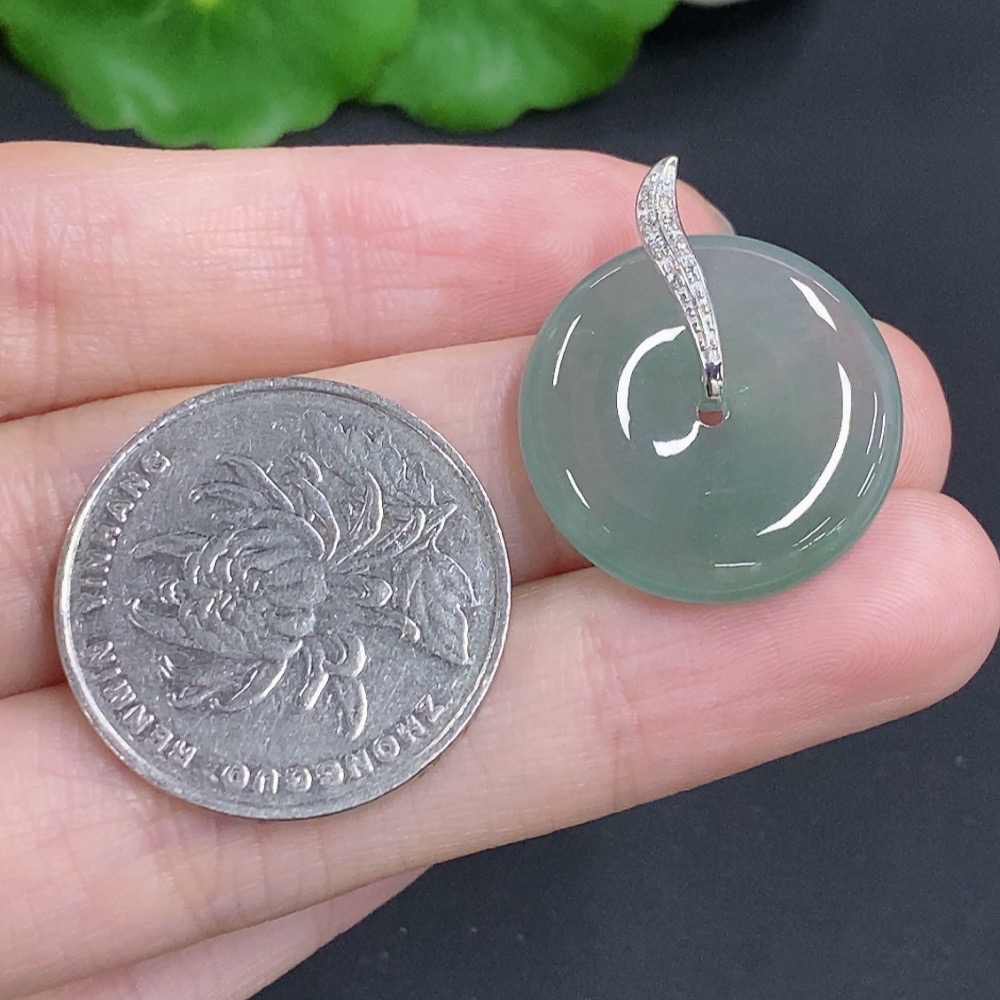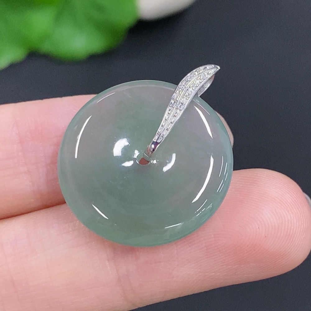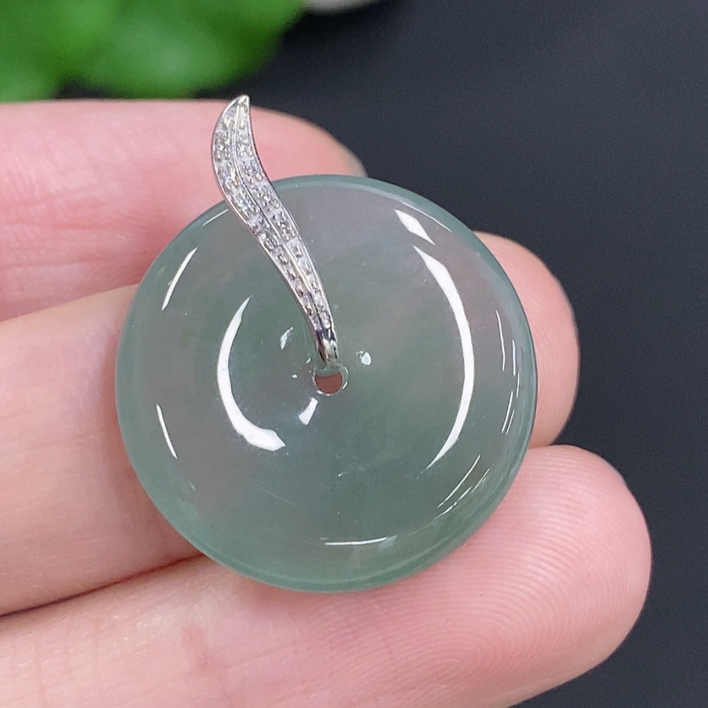 Jadeite Safety Buckle with 18k Gold Clasp, Total Weight Approximately 4.4g, Set with Diamonds