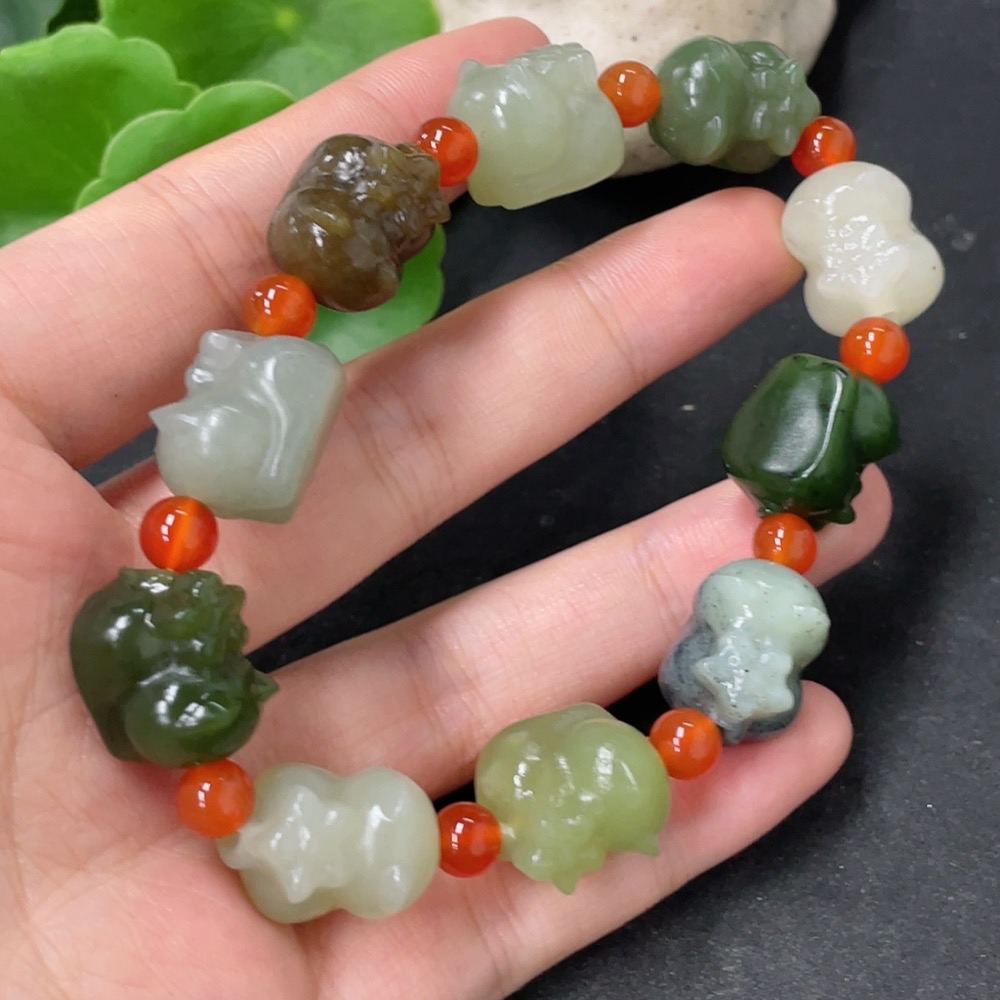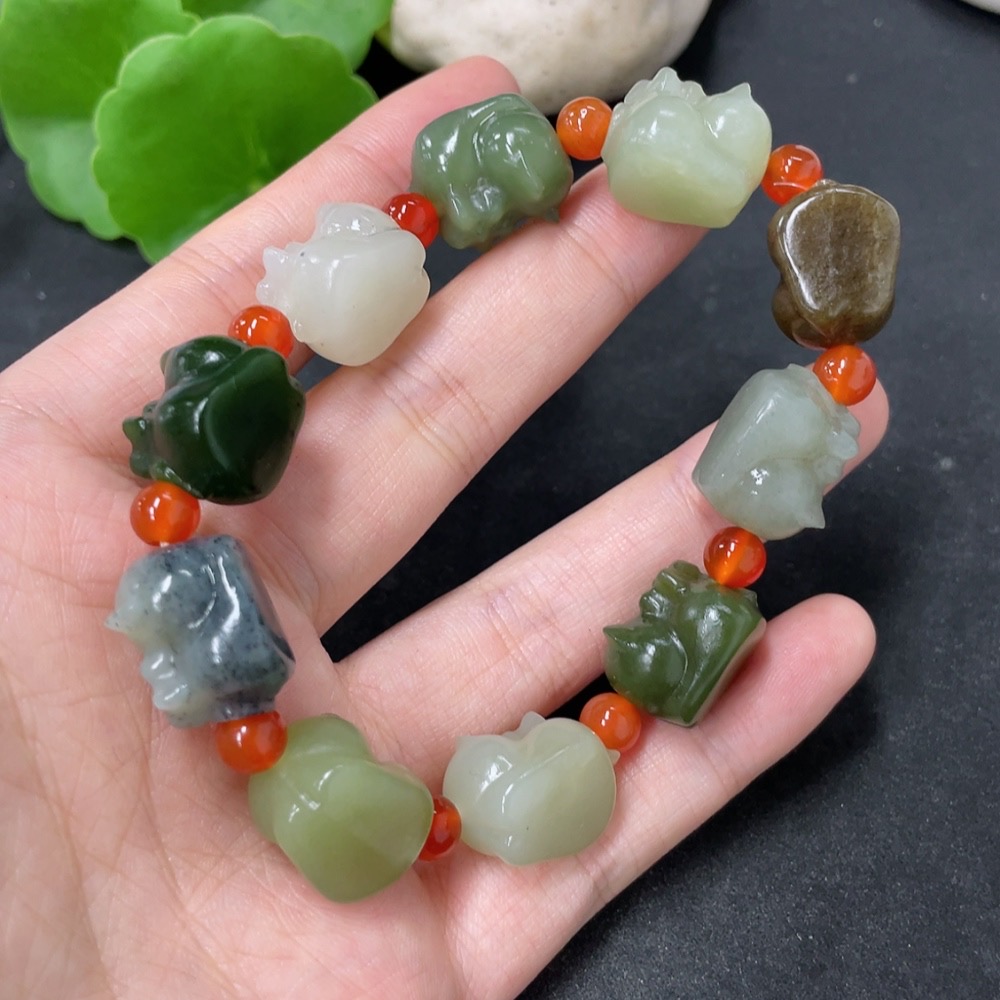 Hetian Jade Bracelet with Non-Hetian Jade Beads, Total Weight Approx. 50.1g