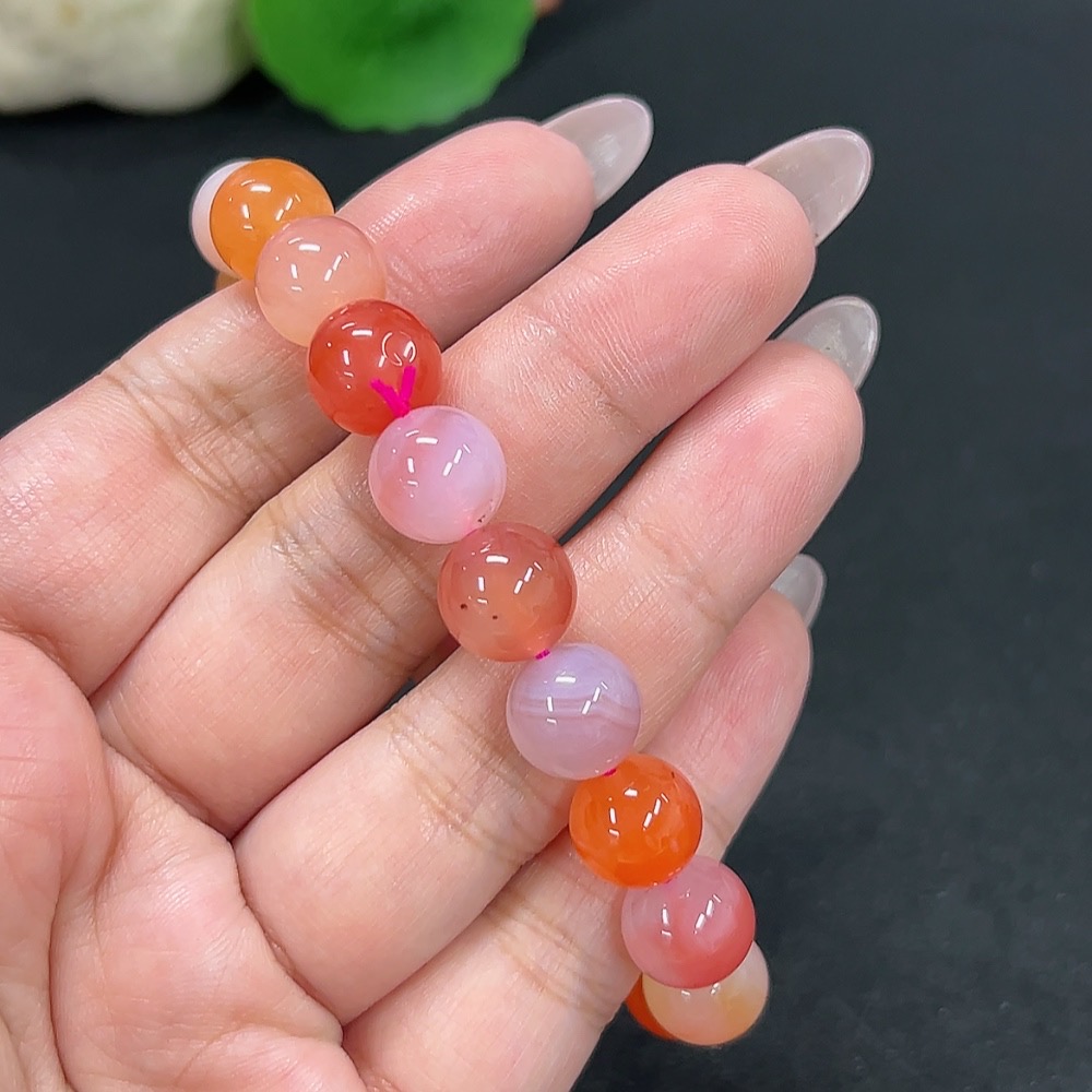 Yanyuan Agate Bracelet, Approx. 10.5mm, Red Only, Total Weight Approx. 31.4g