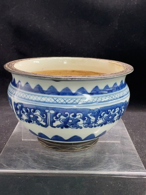 W28218048 Porcelain, Intact, Qing Dynasty Blue Floral Incense Burner (Size Subject to Actual Item)