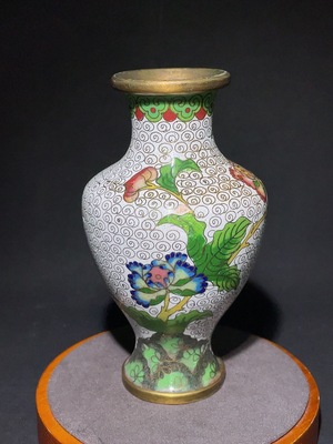 W31638636 Late Qing Dynasty and Republic of China Period Cloisonné Enamel 'Jingtailan' Guanyin Vase with Filigree Floral and Rock Motifs (Miscellaneous)
