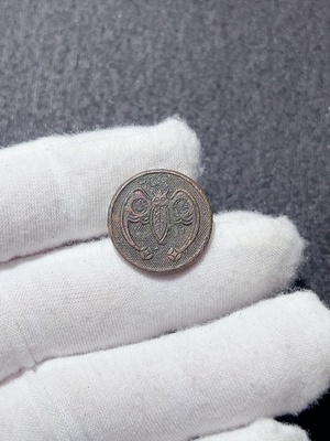 W35155570 Republic of China old brass button with bat motif symbolizing double blessings of fortune and longevity, prosperity in sight, heavy patina, miscellaneous category