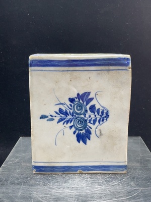 W27080139 Porcelain, Mint Condition, Republic of China Blue and White Painted Square Brush Holder