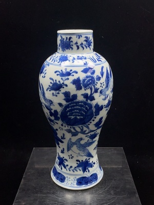 W38541099 Porcelain, Mint Condition, Blue and White Flower-and-Bird Guanyin Vase