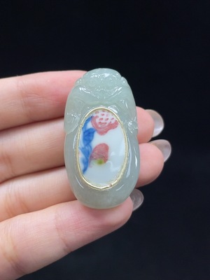 W35145424 Ceramic Pendant with Jadeite-Inlaid Ancient Porcelain Fragment