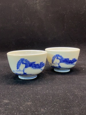 W23575037 Porcelain, Perfect Condition, Early Qing Dynasty Bird Gold Glaze Interior Blue and White Jade Mark Cup