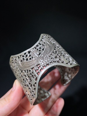 W32764485 Approximately 20th Century West Asian Style Hollow-Out Silver Bracelet with Exquisite Pattern Design, Miscellaneous