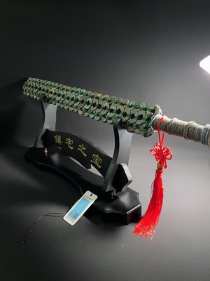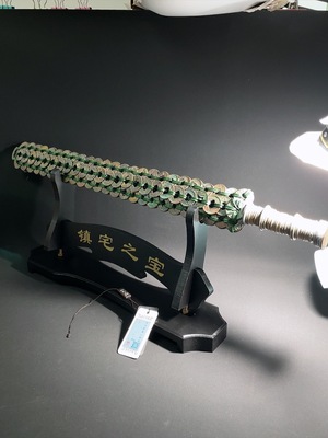 Q39594565 Ancient Tang Dynasty Coin Kaiyuan Tongbao Arranged with Warring States Sword King of Yue Sword Ornament Approximately 250 Pieces