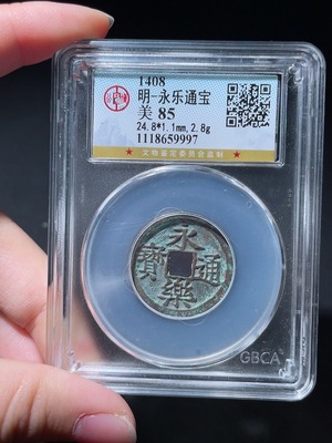 Q30475599 Yongle Tongbao Coin of the Ming Dynasty with Cracked Window, Graded Ancient Coin