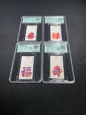 Q22498528 Fortune, Prosperity, Longevity, and Joy - Longevity (Set of 4 Graded Stamps)