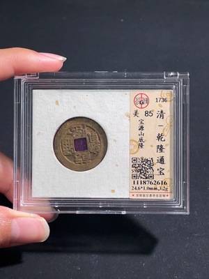 Q30477234 Qing Dynasty Qianlong Tongbao Coin, Baoyuan Mint, Shan Di Long Variety, GBCA Graded 85, Ancient Coin
