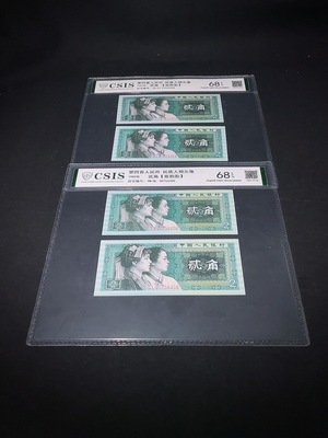 Q33936617 Fourth Series RMB 20-cent Banknote, Same Number Pair Graded Set (Two Sets)