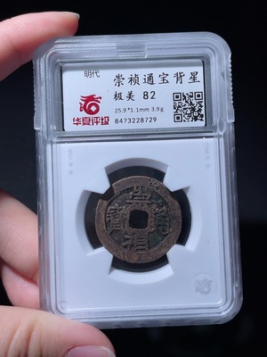 Q26987790 Ancient Coin Chongzhen Tongbao of the Ming Dynasty with Star on the Back, China 82 Points, Open Box