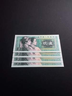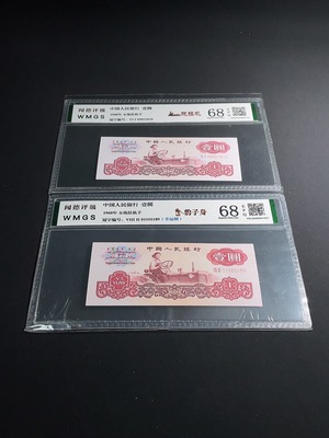 Q38501084 2 pieces of Third Series RMB Tractor One Yuan Banknotes