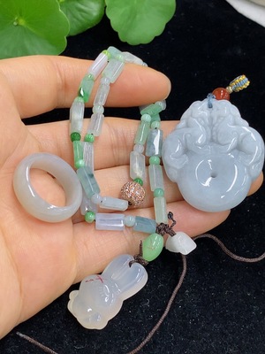 F37396328 Jadeite Beaded Necklace (with non-A grade beads) / Pendant / Ring (Size 12) Sell as a Lot