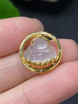 F34075030 Jadeite Buddha Pendant with 18k Gold Setting, Total Weight Approx. 6.39g