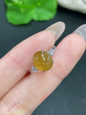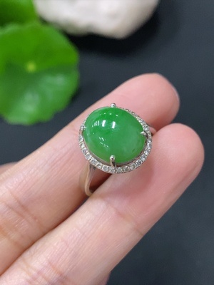 F37419126 Jadeite Cabochon Ring in 18K Gold Size 16 Total Weight Approx. 1.5g (With Diamond Accents)