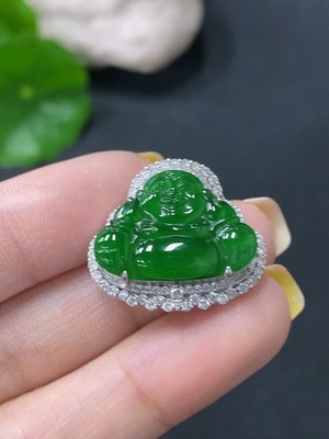 F31593973 Jadeite Buddha Pendant with 18K Gold and Diamond Accents, Total Weight Approx. 2.54g