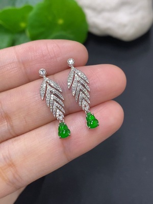 F39553408 Jadeite gourd inlaid earrings 18K gold total weight about 1.9g (with diamond accents)