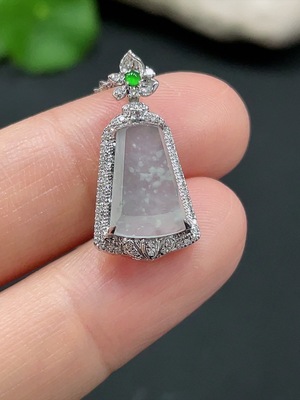F36223994 Jadeite Ruyi Head Inlaid Pendant with 18K Gold and Diamond Accents, Total Weight Approx. 4.86g