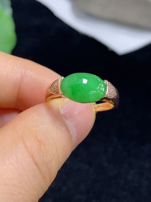 F38526848 Jadeite inlaid ring 18k with diamond size 15 total weight about 2.95g