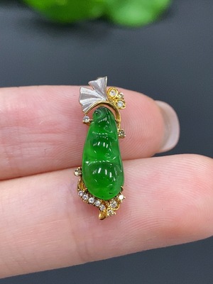 F15583375 Jadeite Blessing Bean Pendant (35% Gold Content, Total Weight 1g)