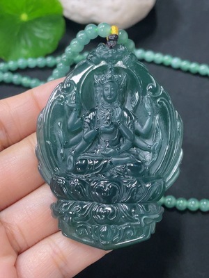 F36276784 Jadeite Pendant of Thousand-Hand Guanyin, Total Weight Approx. 58.9g Including Chain
