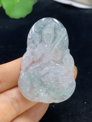 F36211027 Jadeite Manjushri Bodhisattva Pendant, Total Weight Approx. 13.95g