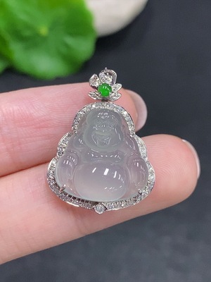 F34002187 Jadeite Buddha Pendant 18k Gold Total Weight Approx. 2.8g with Diamond Accents