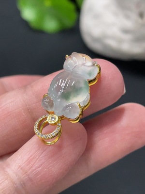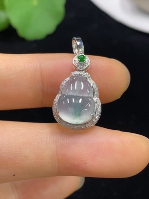 F37363299 Jadeite Gourd Inlaid Pendant with 18k Gold and Diamond Accents, Total Weight Approximately 1.83g