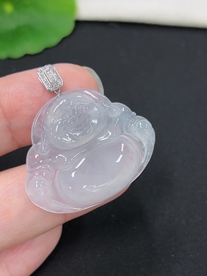 F1051871 Jadeite Buddha Pendant with Mounting, Veins, 18K, Total Weight 3.43g