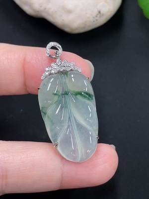 F38512704 Jadeite Leaf Inlay Pendant 18K Gold Total Weight Approx. 4.3g (With Diamond Accents)