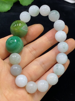 F20226606 Jadeite Bracelet with approximately 7mm beads (small round beads Au99%, non-gold for the rest, non-A grade accessory stones) Total weight: 16.008g