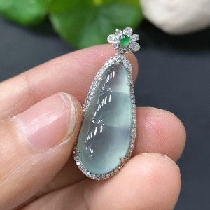 F35187444 Jadeite Bean Pendant 18k Gold Set with Diamond, Total Weight Approx. 1.7g