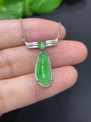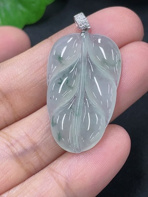 F38510122 Jadeite Leaf Pendant Total Weight Approx. 3.48g 18K Gold Clasp with Diamond Accents