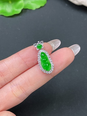 F31589303 Jadeite and Diamond Enclosed Gourd Pendant in 18K Gold, Total Weight Approx. 6.94g