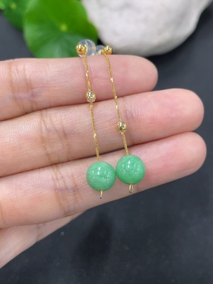 F39559970 Jadeite Bead Inlaid Thread Earrings Pair, Needle Suspected Gold-Plated, Rest 18k, Approx. 7.4mm, Total Weight Approx. 1.78g