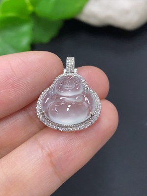 F38533459 Jadeite Buddha Pendant Set in 18K Gold, Total Weight Approx. 2g (with Diamond Accents)