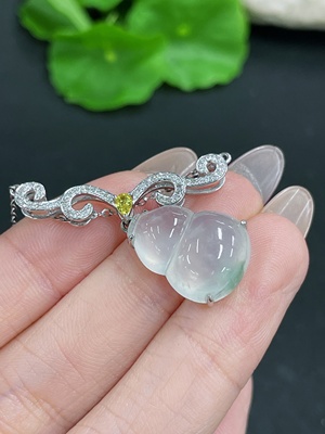 F39550776 Jadeite Pendant Gourd 18k Gold Inlaid with Diamond Colorless Including Chain Total Weight Approx. 5.68g
