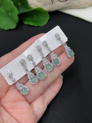 F40742714 Jadeite Inlaid Earrings Non-Gold Sell as a Lot Total Weight About 8.53g