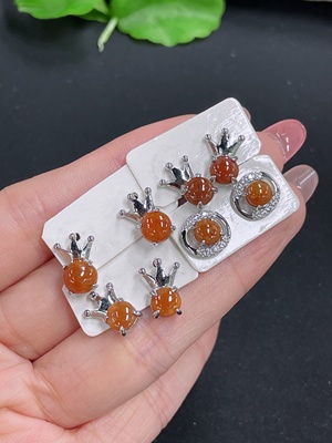 F40699318 Jadeite Bezel-set Earrings/Ping An Kou Pendant Non-gold Inlay