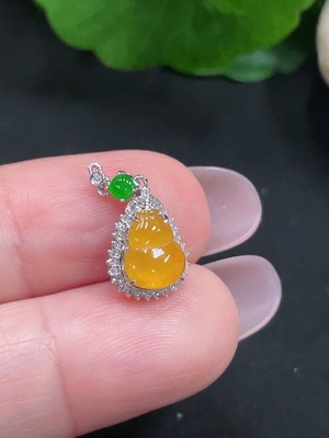 F37357604 Jadeite Gourd Inlaid Pendant Unmarked, 18K Gold Content, Total Weight Approx. 0.7g (With Diamond Accents)