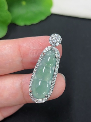F40752193 Jadeite Lucky Bean Pendant Total Weight Approx. 3.4g (Non-Gold Inlaid)