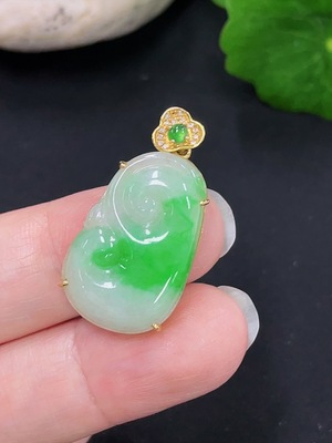 F39547469 Jadeite Ruyi Pendant with 18K Gold Setting, No Diamond, Total Weight Approx. 3.25g