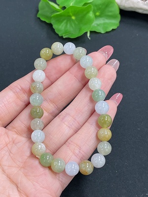 F34029708 Jadeite Bracelet Approx. 7.8mm Beads Total Weight Approx. 18.99g Yellow-Red Beads Color Origin Undetermined