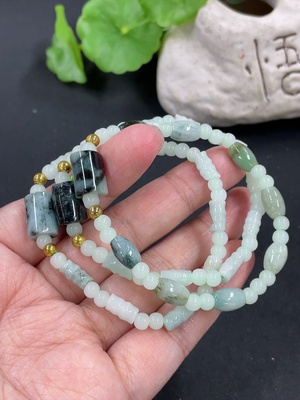F39666785 Jadeite Beads Bracelet Approx. 4.9mm Total Weight 25.15g With Other Mineral Components Non-Gold Accessory Beads