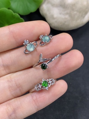 F40773373 Jadeite Inlaid Ring + Earring Sell as a Lot (Non-Gold Inlaid) (Adjustable)