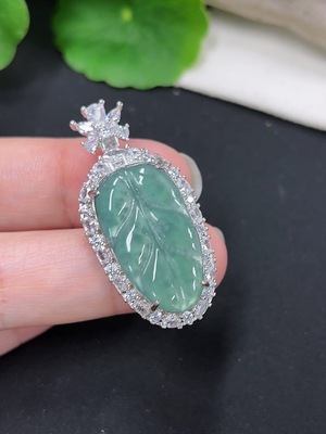 F40742310 Jadeite Leaf Inlay Pendant Non-Gold Inlay Total Weight Approx. 5.85g